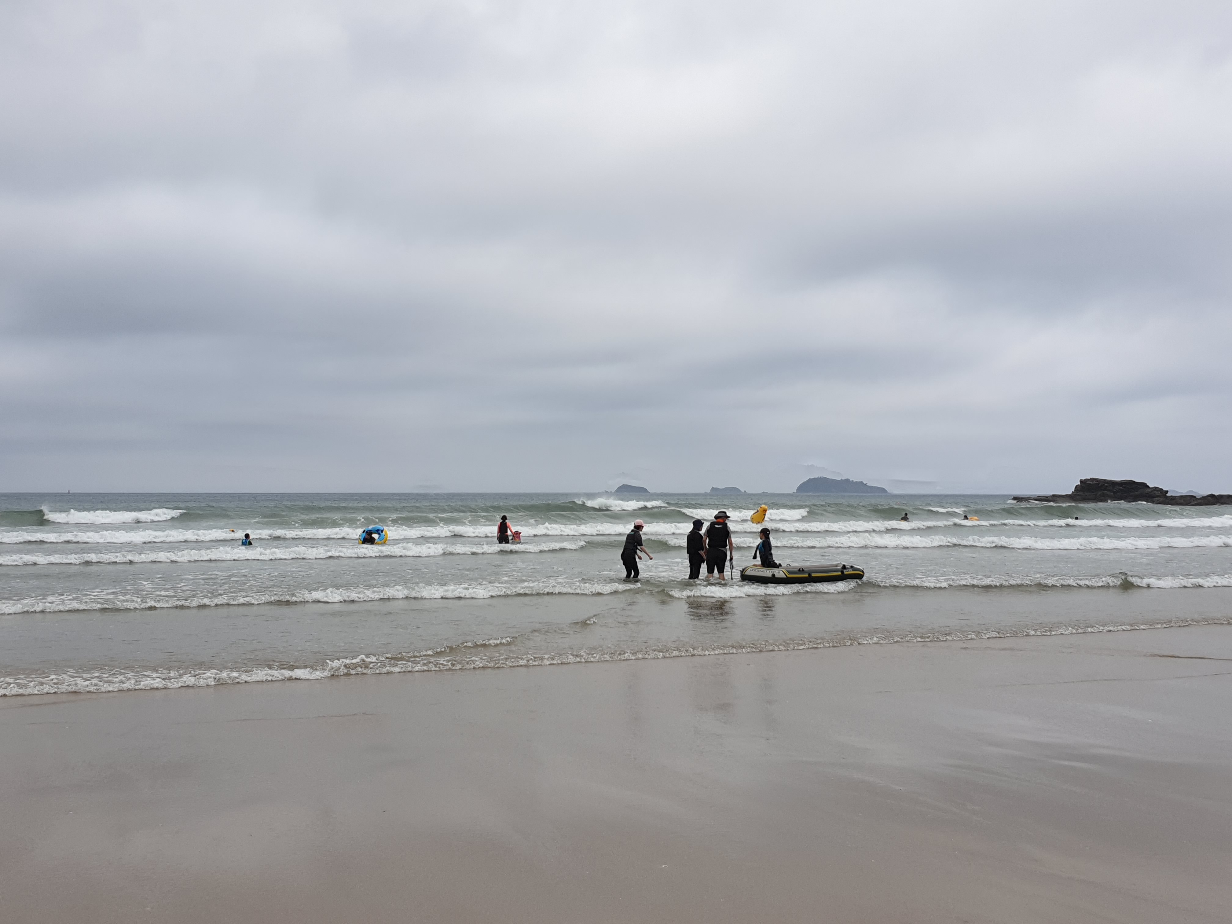 모래사장에 앉아 손으로 모래를 긁으면 조개가 나오는 해수욕장입니다.