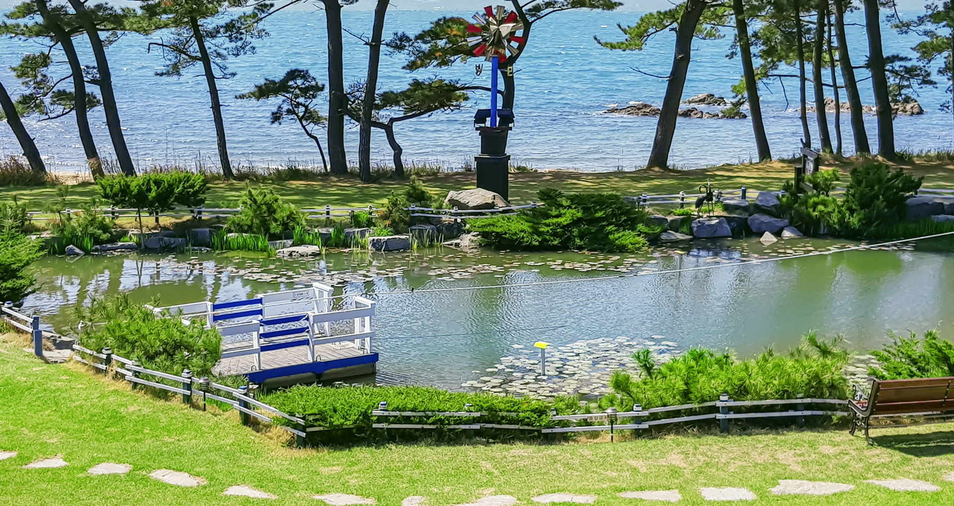 자드락펜션 내의 연못에서