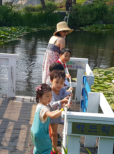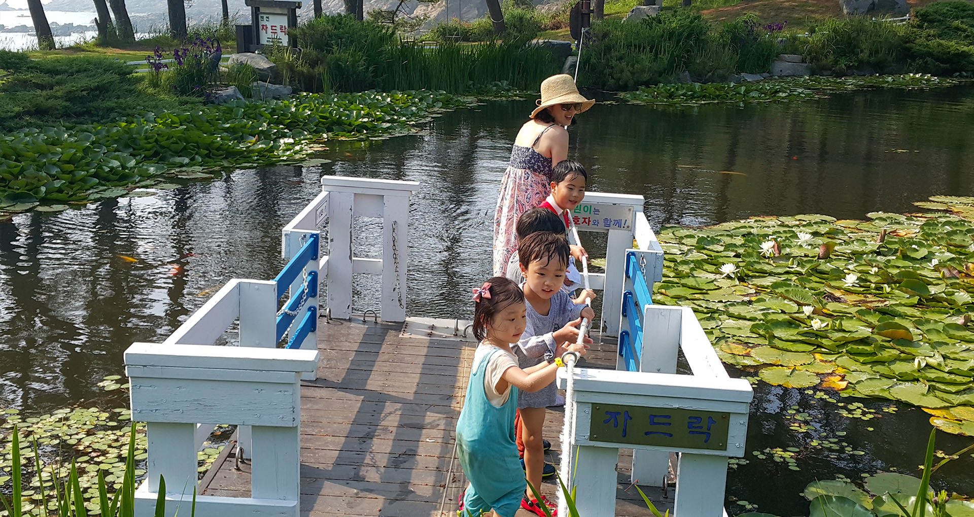 바다전망 연못 위의 뱃놀이는 아이들이