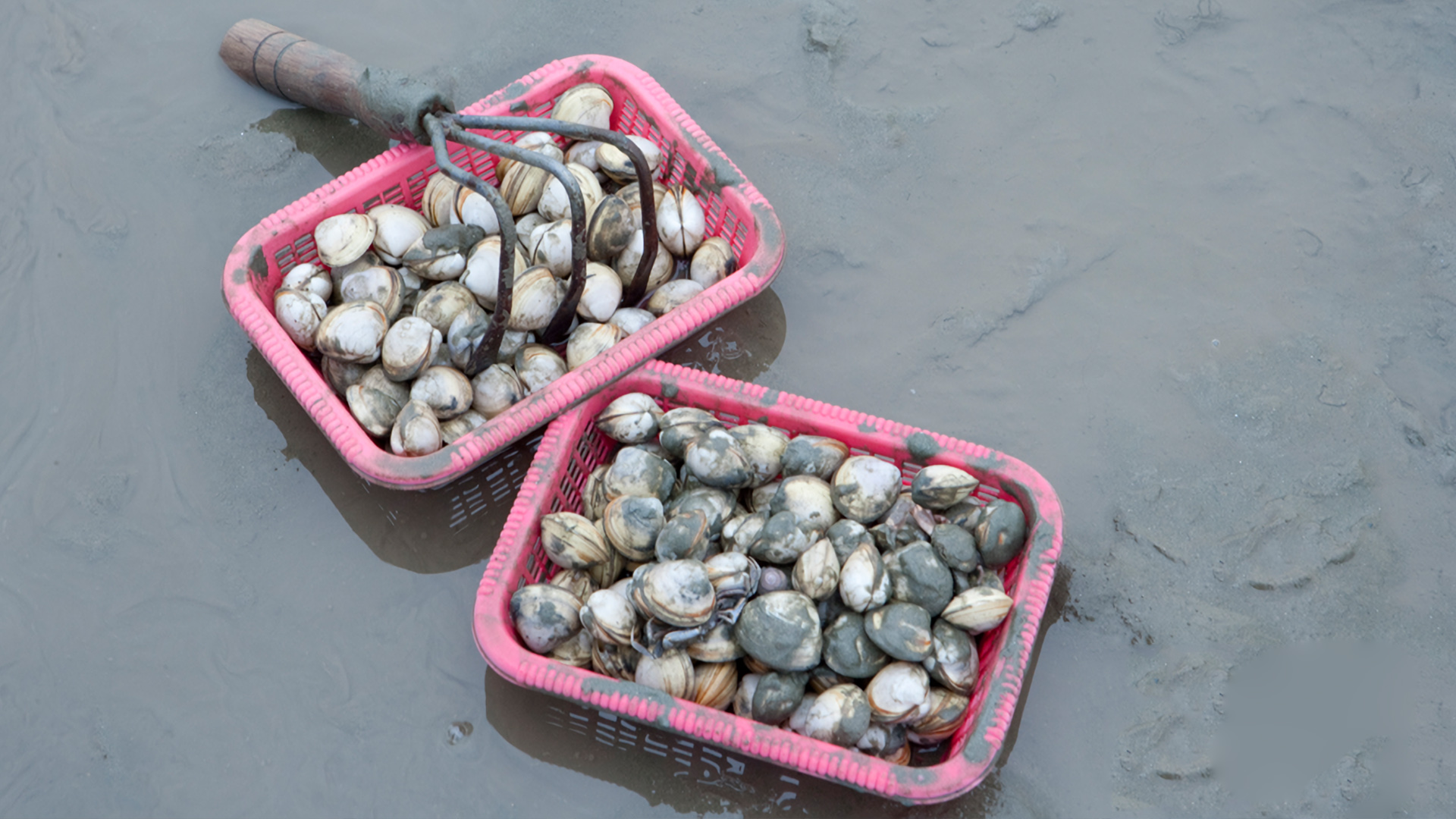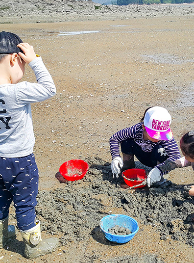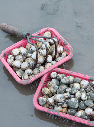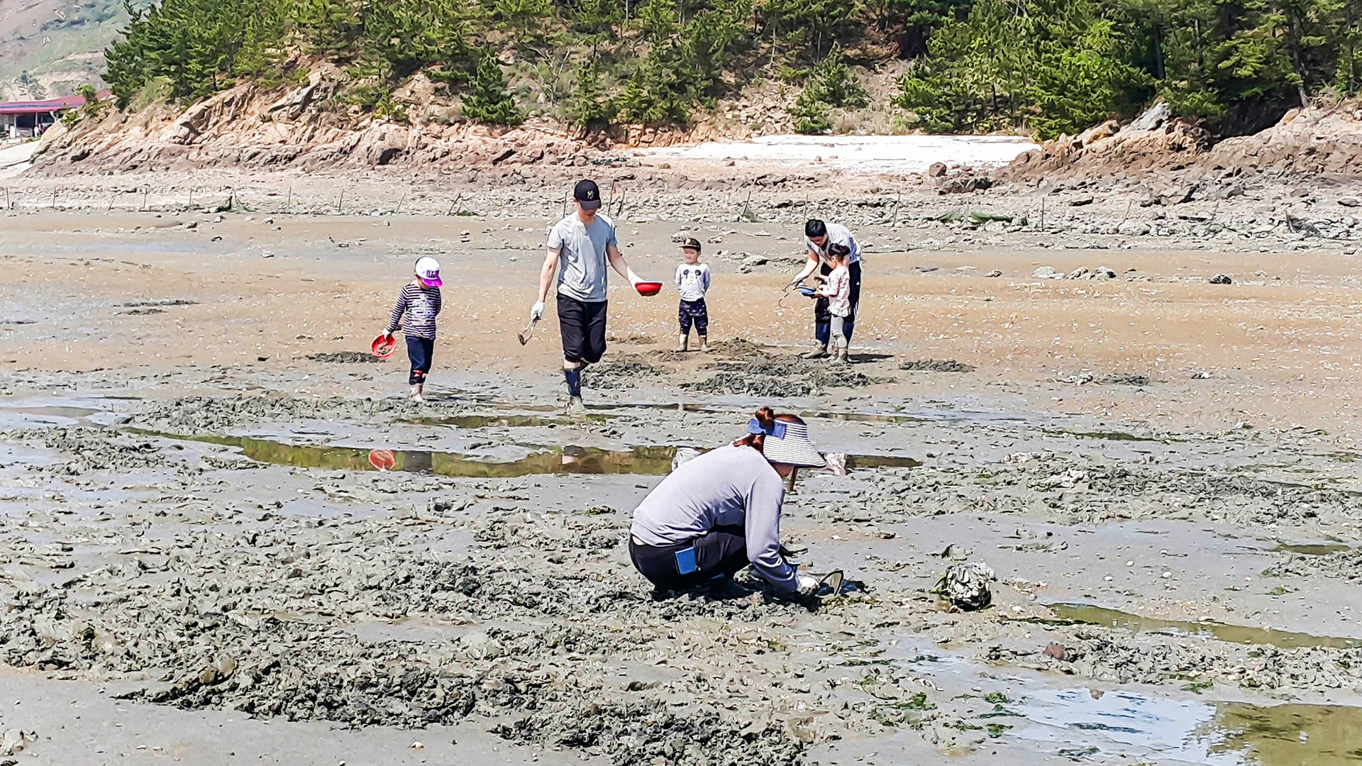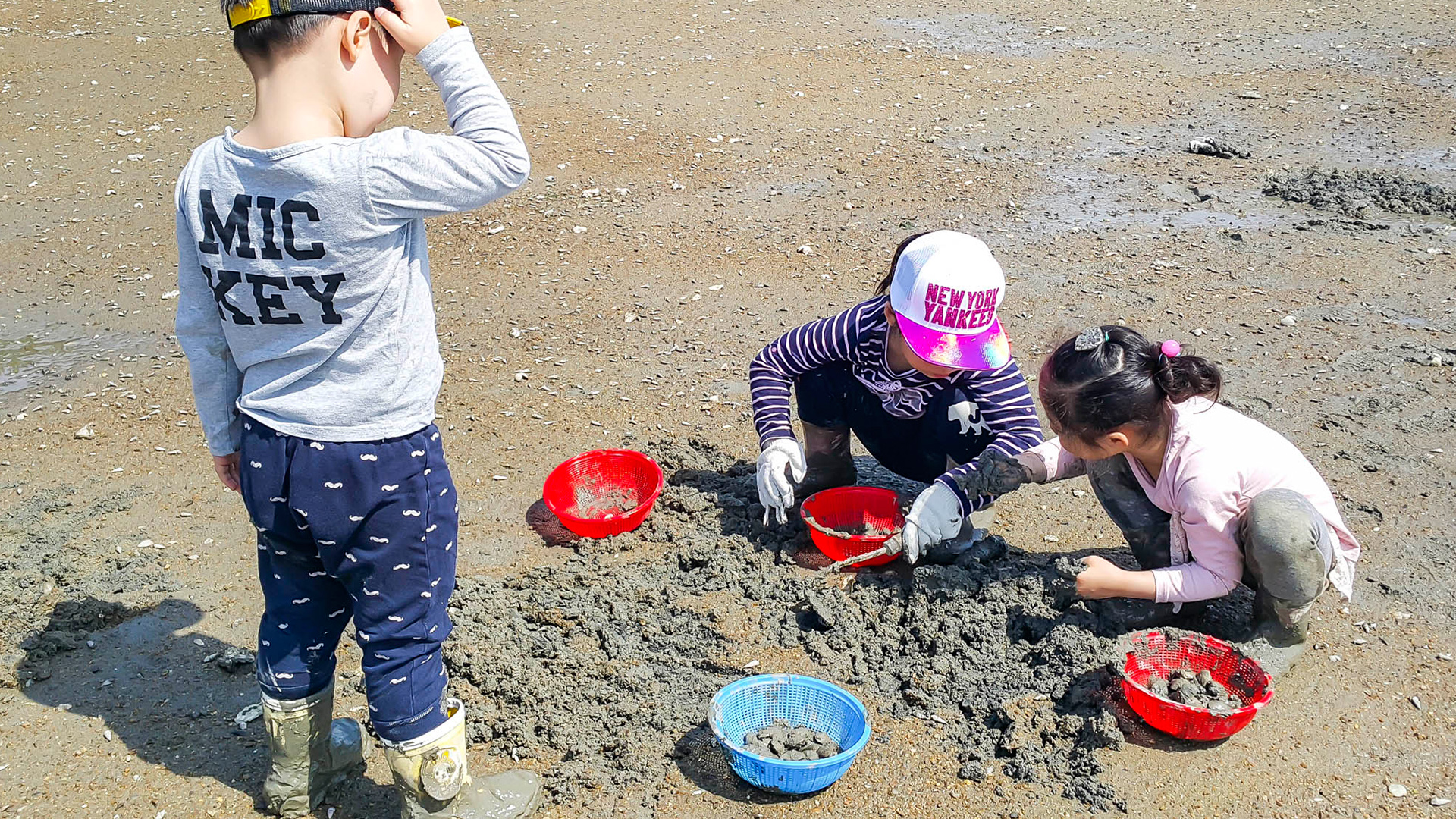 갯벌에서는 굴, 고동, 집게 등을 잡고