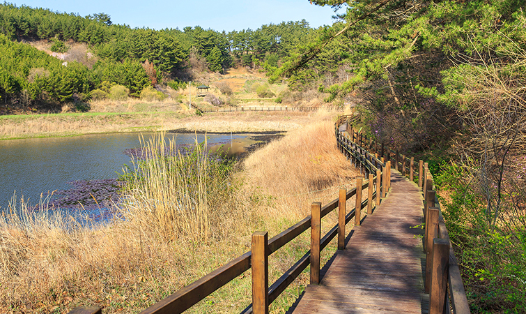 두웅습지는 면적이 6만 5000㎡에 달하여 국내에서 해안사구에 접힌 습지로는 가장 규모가 크다.