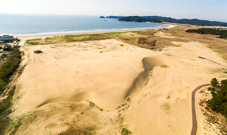 "한국의 사막"이라고 불리는 신두리사구는 북서 계절풍이라는 탁월풍으로 인해 형성된 해안사구지대이다.