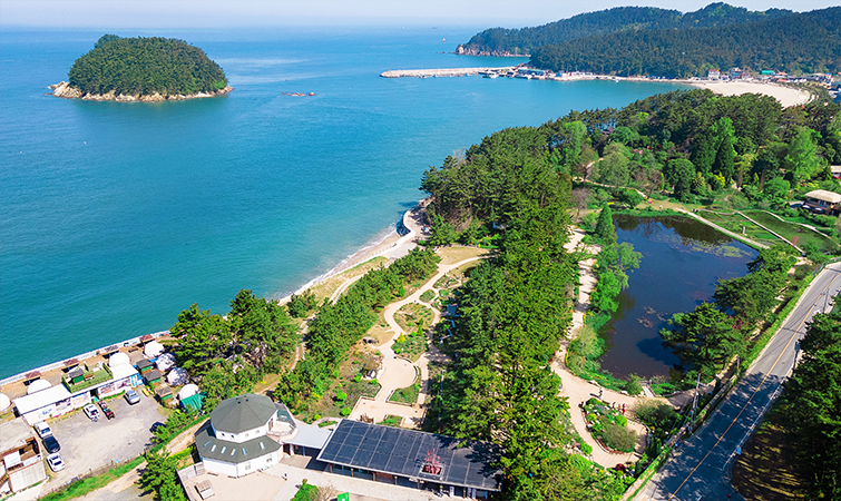 주변에 기암과 송림으로 둘러싸여 있어 태안해안국립 공원 중 1경을 이루고 있다.