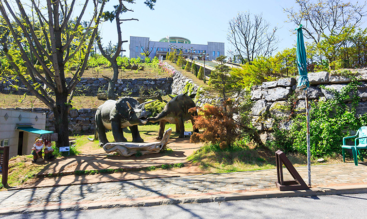 공원 곳곳에는 실물크기의 공룡들을 설치하여 공룡이 살았던 시대의 생태환경을 그대로 재현하였다.